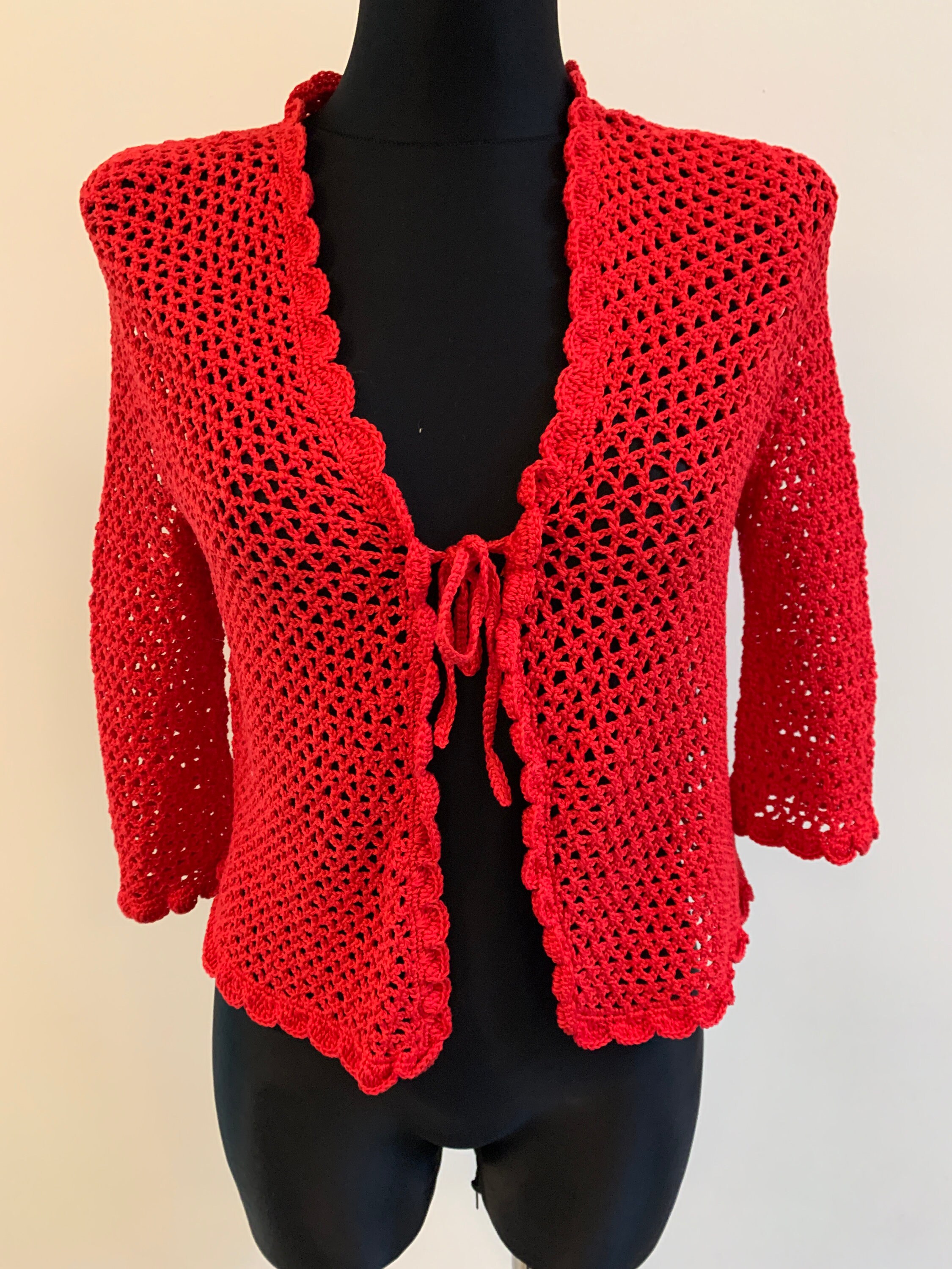 Vintage Women S Crochet Elegant Jacket Bright Red Blouse Etsy